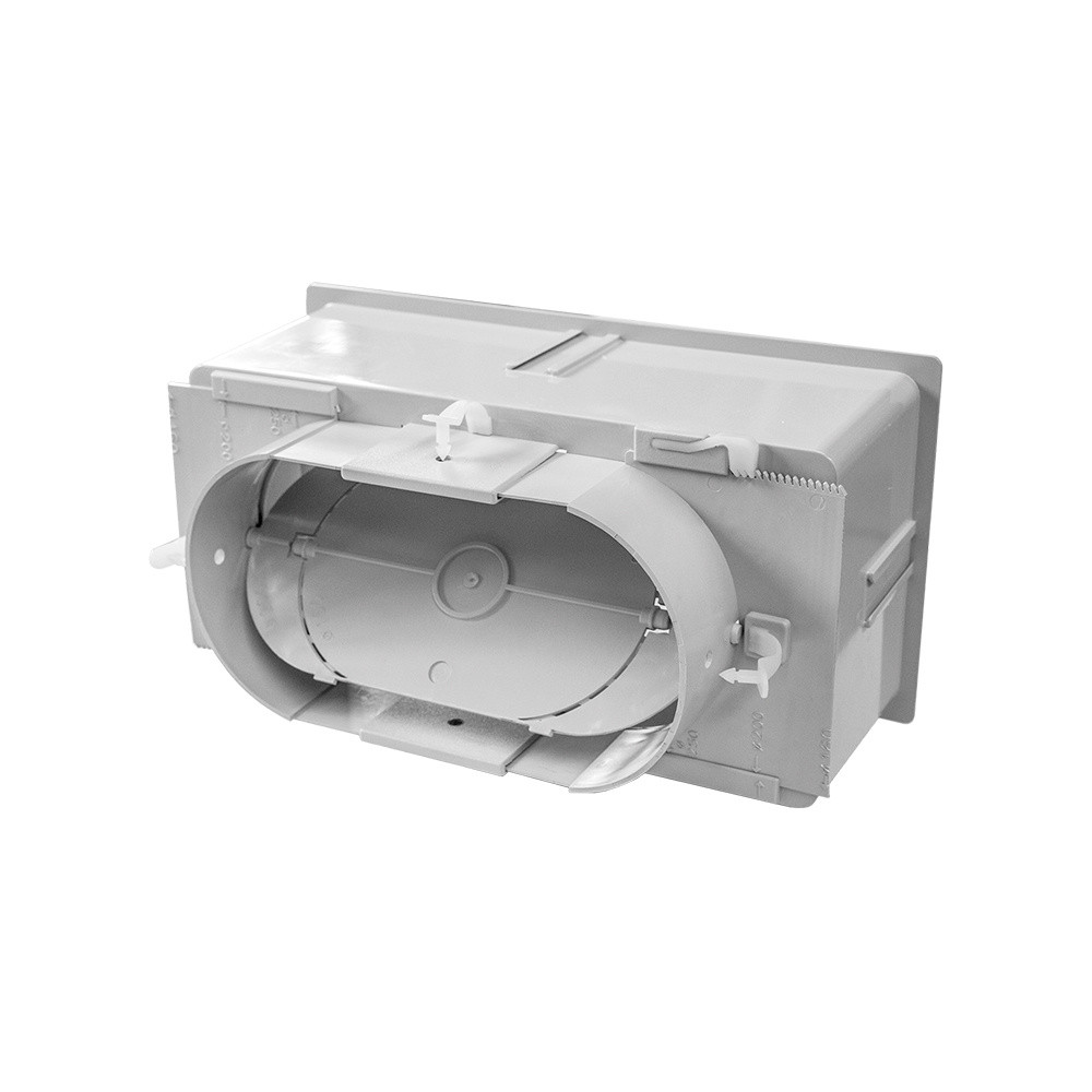 Plenum in policarbonato dotato di raccordo rapido al condotto flessibile e regolabile fino a 5 diametri diversi;